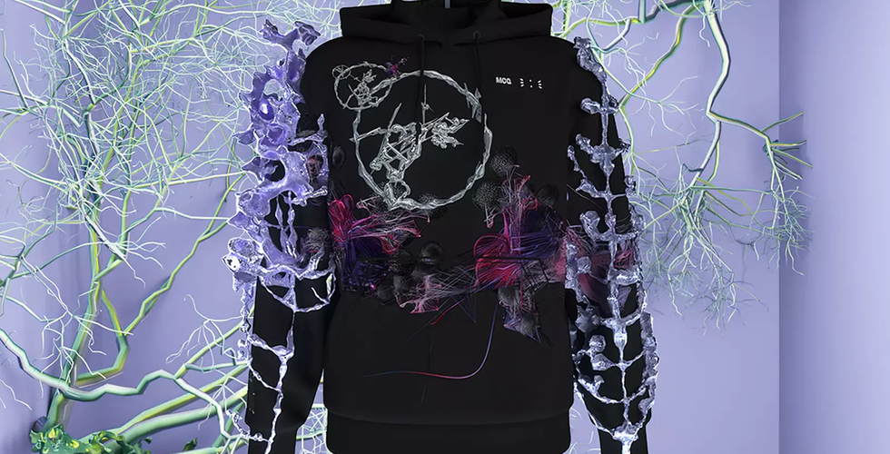 The three-way creative collaboration comes in several parts; a digital t-shirt, hoodie, and an ultra-exclusive 1 of 1 digital and physical hoodie crafted by MCQ with an embedded NFC chip which allows the product to be registered via the brand's own blockchain. When the collection goes live, customers will be able to access the AR experience via Instagram.